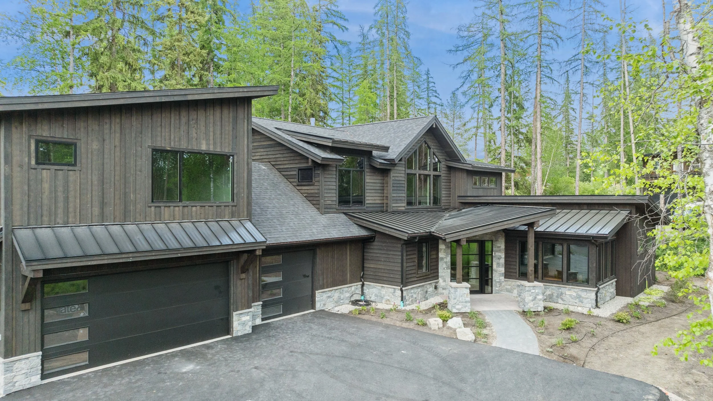 Nestled in a secluded copse close to town, this modern residence has a number of stunning features, the most impressive of which is a massive atrium-style living room that opens to the second floor, as well as to the greenery outside of the floor-to-ceiling windows. It also sports two incredible office spaces, one of which is accessible by a secret bookshelf door!
